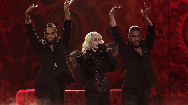'Sé quién soy', grita Angy Fernández en su actuación, en la que aparece acompañada por dos paredes gigantes y varias bailarinas y guitarristas. Una puesta muy teatralizada en la que la cantante vuelve al pop rock que la hizo conocida a mitad de los 2000. Protagonista de uno de los momentos más recordados de esta edición, en pleno subidón de guitarras, focos y música, Angy y sus dos bailarinas se abrazan emocionadas en el escenario en un gesto que representa la aceptación y superación de los miedos.