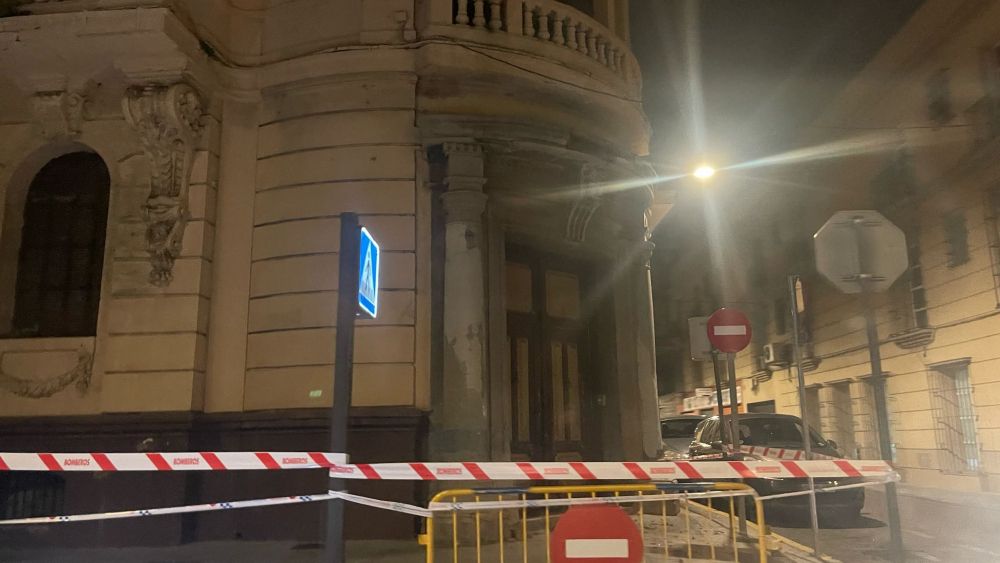 La acera de la calle Segismundo Moret, esquina con José Santacana, permanece acordonada desde hace días debido al desprendimiento de cascotes del edificio del antiguo hotel Sevilla, ubicado en el número 20. Los bomberos han tomado esta medida para evitar que algún desprendimiento pueda caer sobre algún viandante.