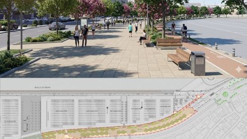 A lo largo del bulevar se dispondrán dos alineaciones de arbolado para generar espacios de sombra junto a las plazas de aparcamiento, y arbustos de bajo porte con gran capacidad de absorción de CO2 delimitando el carril bici. La zona también contará con pérgolas y bancos.