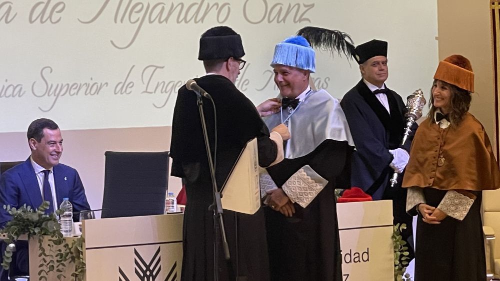 El acto se ha celebrado en la Escuela Técnica Superior de Ingenieros de Algeciras, centro proponente del reconocimiento, ante 350 personalidades pertenecientes a la comunidad universitaria, autoridades, familiares y amigos como Niña Pastori. El artista llegaba una hora antes del inicio del acto y se encontraba a un nutrido grupo de fans esperándolo. Sanz ha bajado del vehículo, se ha dejado fotografiar y ha firmado autógrafos y discos. No ha querido dejar ningún 'corazón partío'. Después daba comienzo al solemne acto y Sanz acompañado de su madrina, la directora de la ETSIA, Paloma Cubillas, hacía entrada en el salón de actos.