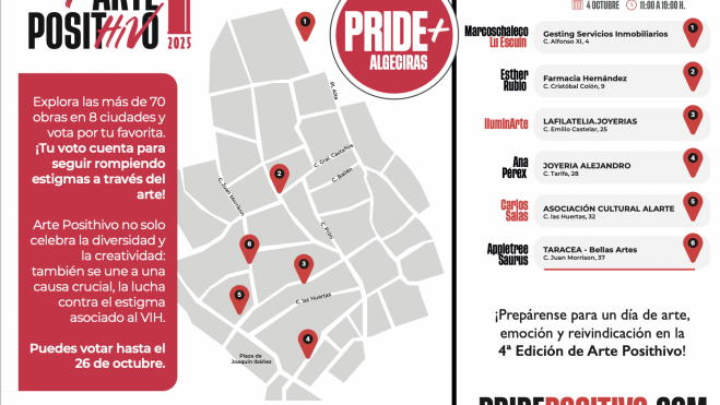 El Pride Positivo en Algeciras está organizado por la asociación Iwales, en el marco del macroevento promovido por Cesida, con apoyo de la Secretaría de Estado de Derechos Sociales, la Dirección General para la Igualdad real y efectiva de las personas LGTBI+ del Ministerio de Igualdad, y el patrocinio de ViiV (oro) y Gilead (plata).