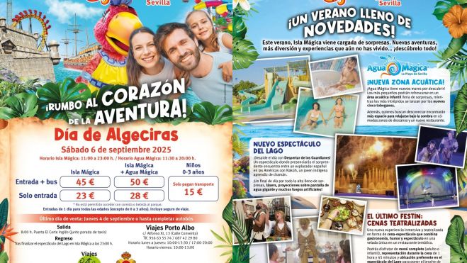 El Ayuntamiento de Algeciras, junto a la agencia Viajes Porto Albo y el parque temático Isla Mágica de Sevilla ponen a disposición del público el Día de Algeciras en Isla Mágica 2025, que se celebrará el próximo sábado 6 de septiembre.