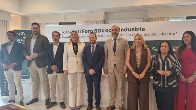 El concejal delegado de Industria del Ayuntamiento de Algeciras, Álvaro Márquez, participó en el III Foro 8Directo Industria, celebrado en el Hotel Guadacorte, que bajo el título 'Economía circular e industria en el Campo de Gibraltar' analizó los retos y oportunidades del sector industrial en la comarca. Entre los asistentes también se encontraba la presidenta de la Mancomunidad de Municipios del Campo de Gibraltar, Susana Pérez Custodio.