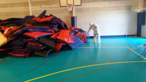 El Ayuntamiento de Algeciras ha informado que se están llevando a cabo los trabajos de limpieza y desinfección del Pabellón Andrés Mateo, situado en el barrio de El Saladillo, una vez finalizados los trabajos de identificación y atención realizados por el Cuerpo de la Policía Nacional y otros colectivos a los inmigrantes que fueron rescatados en aguas del Estrecho de Gibraltar.