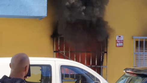 Cuatro vehículos de Bomberos con siete efectivos invervinieron en el incendio, declarado pasado mediodía de este domingo, 12 de enero, en un bajo de un piso de cuatro plantas de la Urbanización Nuevas Colinas, en La Granja. A la llegada de los bomberos las llamas salían por una de las ventanas y el humo era visible incluso desde la autovía.