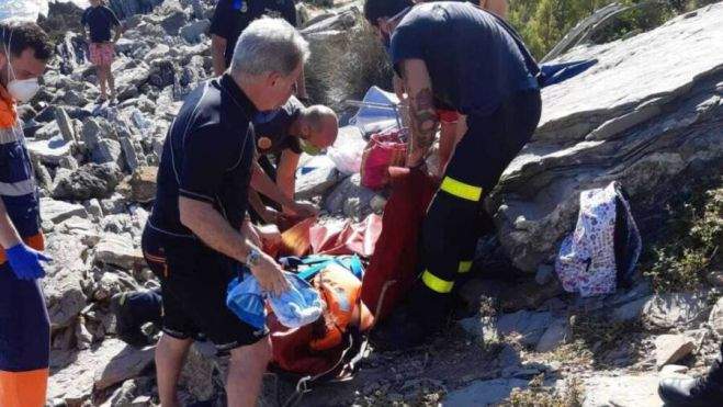 Bomberos del Consorcio de Bomberos de la provincia de Cádiz del parque de Algeciras intervinieron este domingo en el rescate de una mujer accidentada en el acantilado de la playa de Calarena. Esta es una cala de muy difícil acceso, inaccesible para los vehículos. Al parecer la mujer se había dado un golpe en la cabeza y en la espalda por lo que no se atrevían a moverla hasta la llegada de los servicios sanitarios y de rescate.