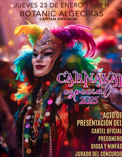 La teniente de alcalde delegada de Feria y Fiestas, Juana Cid, ha anunciado que el próximo jueves,a las siete de la tarde y en la cafetería Botanic, ubicada en la avenida Capitán Ontañón, tendrá lugar el acto de presentación del cartel anunciador y del pregonero del Carnaval Especial 2025, que se celebrará el fin de semana del 7 al 9 de marzo.