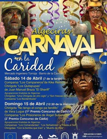Así, tras las el éxito cosechado con “Flamenco en la Caridad” y la “Gran zambomba” a la estela de la experiencia de la noche de Tosantos, los días 14 y 15 de abril se podrá disfrutar de coplas de carnaval en nuestra ciudad, concretamente en el mercado “Ingeniero Torroja” el cual albergara las actuaciones de agrupaciones de Cádiz y con las de los ocho finalistas del concurso del Teatro Municipal Florida.