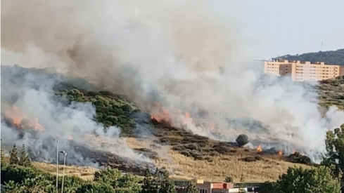 Los bomberos intervienen en este momento en un incendio de pastos junto a la A-7 a su paso por Algeciras, dirección Tarifa.