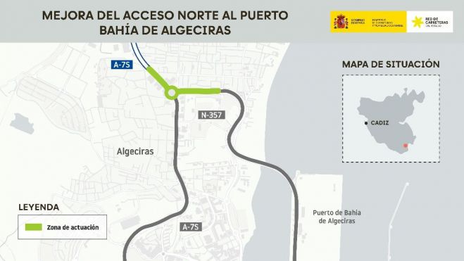 El Consejo de Ministros ha autorizado hoy al Ministerio de Transportes y Movilidad Sostenible a licitar por 19,1 millones de euros (IVA no incluido) las obras para mejorar y acondicionar la conexión de la autovía A-7 (antigua N-340) con el acceso norte al Puerto Bahía de Algeciras por la carretera N-357.
