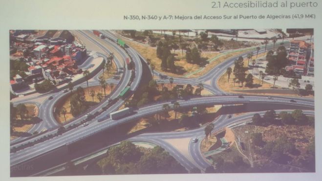 Así, atendiendo a esta infraestructura viaria compleja, por lo urbano y ambiental además, según destacó Fernández Palomares, el Ministerio de Transportes, a través de la Dirección General de Carreteras, proyecta esta planificación para la mejora de los accesos y la circulación del tráfico rodado entorno al Puerto de Algeciras con un impacto directo en la ciudad algecireña. El ministro de Transportes, durante esta reciente visita a Algeciras, cifró en 1.775 millones de euros las inversiones totales puestas en marcha para afianzar al Puerto de Algeciras como puerta de entrada a Europa y al Mediterráneo.