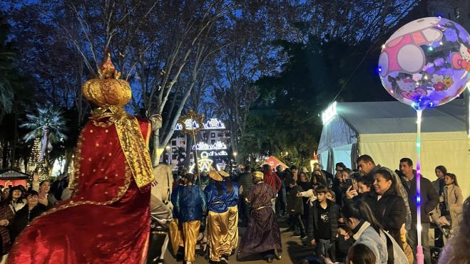 A lomos de un caballo el mensajero de los Reyes Magos ha ido lanzando caramelos a todos los pequeños y mayores que se encontraba en su camino. Además, su Corte también ha repartido dulces y cartas para que los niños pudiesen escribir los regalos que quieren este año.