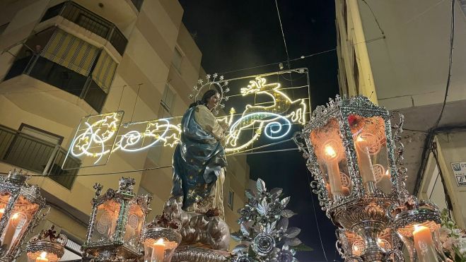 Entre el alumbrado navideño y el cariño de sus fieles, la Santísima Virgen Inmaculada Concepción ha salido por el centro de Algeciras, iniciando su recorrido desde la Iglesia de Nuestra Señora de la Palma.