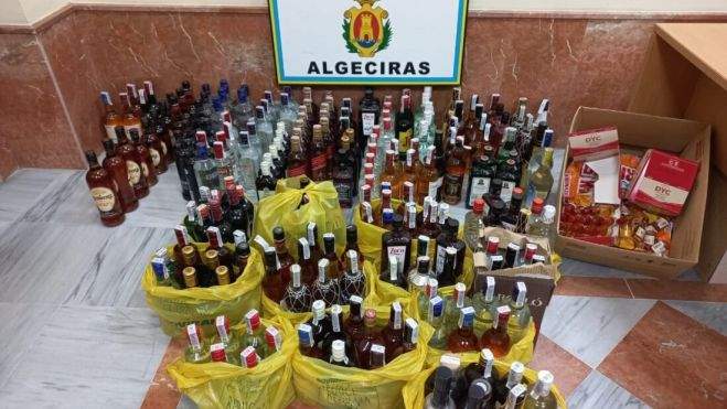 Agentes de paisano del Grupo Delta la Policía Local de Algeciras han procedido a intervenir cautelarmente 278 botellas de bebidas alcohólicas en dos establecimientos comerciales tras detectar que se vendían a jóvenes después de las 22.00 horas.