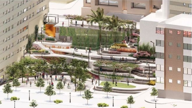 La plaza acogería para uso ciudadano zonas de juego, plataformas para la realización de eventos, espacios de descanso, zonas con conexión wi-fi, áreas de trabajo al aire libre, anfiteatro para espectáculos con capacidad para 300 personas sentadas, puntos de préstamo, carga y estacionamiento de vehículos eléctricos, así como un proyecto paisajístico de jardinería que recrea un itinerario botánico de especies endémicas de la zona. La posición permite aprovechar las diferentes plataformas como miradores naturales desde los que contemplar la Bahía de Algeciras con la imponente figura del Peñón de Gibraltar como telón de fondo y el Puerto de Algeciras.