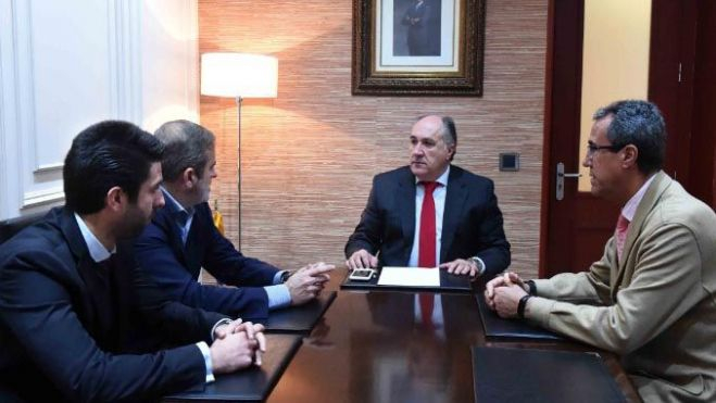 El alcalde, José Ignacio Landaluce, acompañado del teniente de alcalde delegado de Urbanismo, Diego González de la Torre, ha recibido a los responsables de la empresa Innovía Coptalía, Miguel Ángel Salas y Diego Valdivia, ganadora de la convocatoria para la adjudicación del mantenimiento de viales. Se trataba de una primera toma de contacto para su presentación oficial y para informar sobre la planificación prevista para el desempeño de sus funciones.
