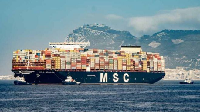 La imponente figura del MSC Gulsun, el mayor portacontenedores del mundo, ya se encuentra atracado en el muelle Juan Carlos I de Puerto Bahía de Algeciras. El gigante, de 400 metros de eslora y 61,5 de manga, ha entrado lento pero seguro, asistido por cuatro remolcadores, y cargado con unos 19.500 teus; casi completo ya que es capaz de transportar 224.986 toneladas en 23.758 teus. El algecireño es el primer puerto europeo que toca en su viaje inaugural.