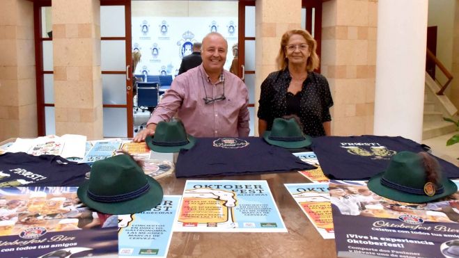 La teniente de alcalde delegada de Feria y Fiestas, Juana Cid, ha presentado, junto al delegado del grupo Heineken, Carlos Cañizares, el cartel anunciador del Oktoberfest de Algeciras que se celebrará del 28 de septiembre al 1 de octubre en la plaza de toros de Las Palomas.