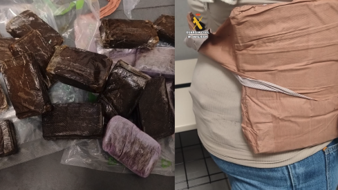 Ante la posibilidad de que pudiera estar cometiendo un acto ilícito, se le realizó un registro exhaustivo, comprobando que portaba sustancias estupefacientes adosadas a su cuerpo. Concretamente ocultaba una faja alrededor del torso con 20 envoltorios de resina de hachís que arrojaron un peso aproximado de dos kilos.