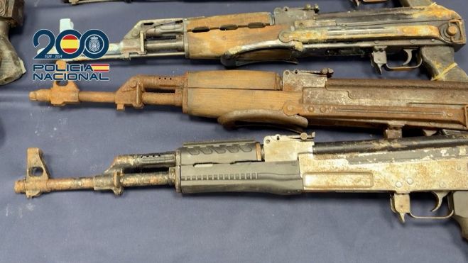 En la operación desarrollada en Algeciras, distinta a la de Marbella, los agentes intervinieron 25 armas de fuego destinadas a proteger las guarderías de la droga. Las armas -19 armas de guerra AK47 del calibre 7´62 y 6 armas cortas de 9mm PB- fueron localizadas en el interior de un vehículo con placas dobladas en la localidad. Una persona fue detenida por su implicación en los hechos.