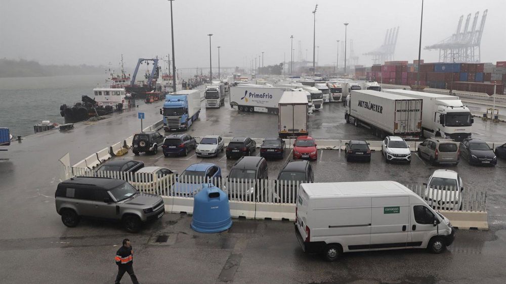 El puerto de Algeciras reanuda poco a poco su actividad, después de cancelar ferries y prohibir el acceso a camiones debido a que se habían acumulado en sus zonas de aparcamiento unos 2.800 vehículos a la espera de embarcar hacia sus destinos y ante la imposibilidad de ello al no salir barcos por el fuerte viento y oleaje en el Estrecho de Gibraltar.