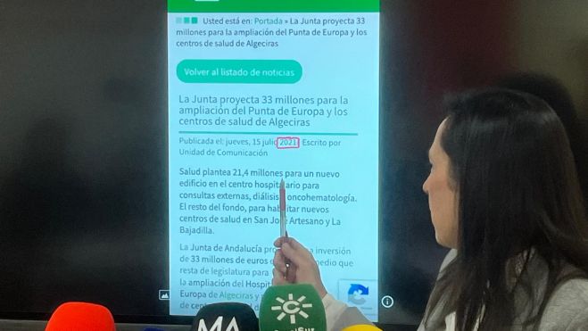 La secretaria general del PSOE de Algeciras, Rocío Arrabal, ha recordado que en 2021 la Junta de Andalucía anunció "una inversión de 33 millones de euros en el año y medio que resta de legislatura para la ampliación del Hospital Punta de Europa de Algeciras y para mejorar la red de centros de salud de la ciudad y que "siete años de anuncios y más anuncios no hemos visto nada". “Tenían un montón de dinero de fondos europeos, y lo han perdido, porque han sido incapaces de gestionarlo”, ha criticado la socialista.