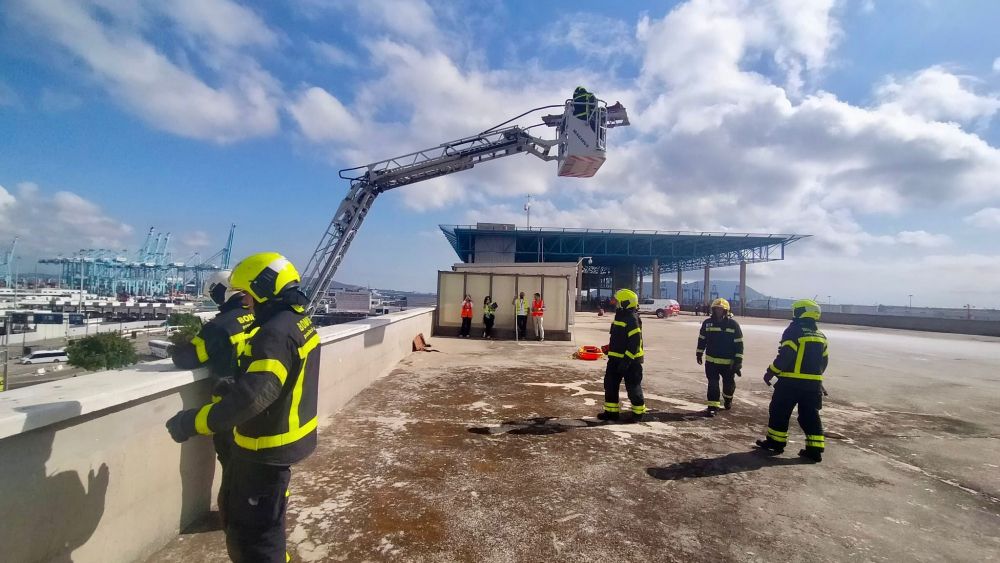 El helipuerto de Algeciras ha acogido este miércoles un simulacro de emergencia aeronáutica para evaluar los procedimientos de actuación recogidos en su Plan de Autoprotección, al recrearse la colisión de un helicóptero, con 12 personas a bordo, contra la cubierta del aparcamiento del puerto de la ciudad.