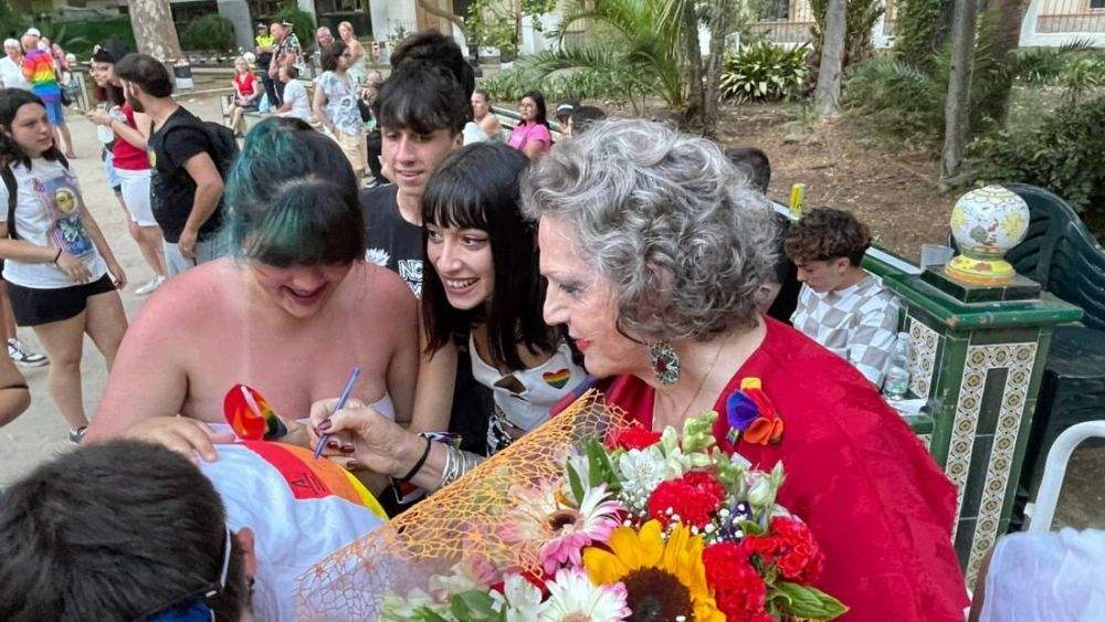 El Parque María Cristina aplaudía cada frase de lucha de la icónica Manolita Chen. Para la pregonera no hacen falta las etiquetas ni hablar de genitales. "Hablemos de amor, cariño, dignidad y respeto", clamaba a los cuatro vientos entre banderas de arcoíris del colectivo. Gritos y aplausos como respuesta a ese reclamo.
