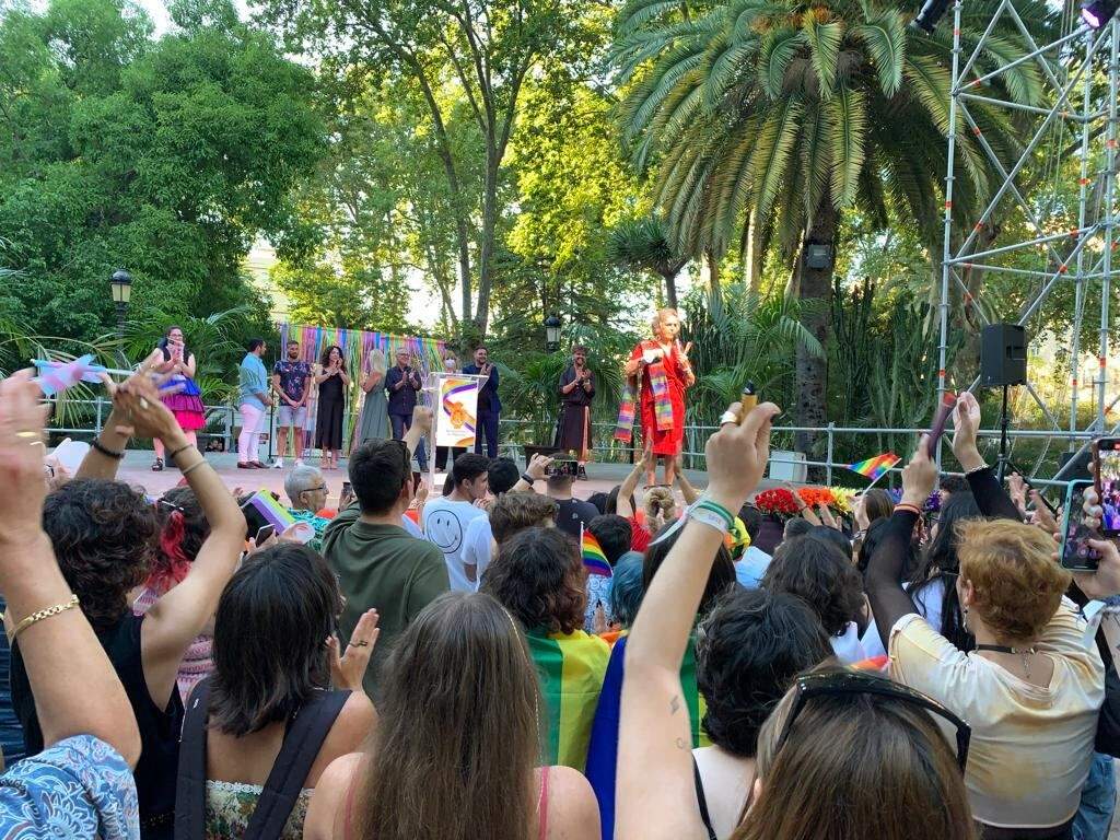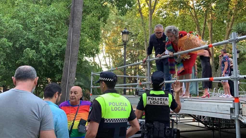 "Yo soy Manolita Chen. Pero tú también, y tú, y tú. Todas somos Manolita Chen. Todas hemos sufrido discriminación en algún momento de nuestra vida", señalaba a cada uno de los presentes. Manolita terminaba así su discurso como pregonera del Orgullo Especial 2022, con un gran público entregado a la pregonera y activista trans, que entre lágrimas de emoción y aplausos abandonaba el escenario para dejar paso a sus compañeras y compañeros de lucha, de reivindicación, pero también de fiesta y de celebración por lo conseguido. Jesús Tomillero, presidente de la Asociación Roja Directa Andalucía LGTBI+, le entregaba un ramo de flores y un cálido abrazo.
