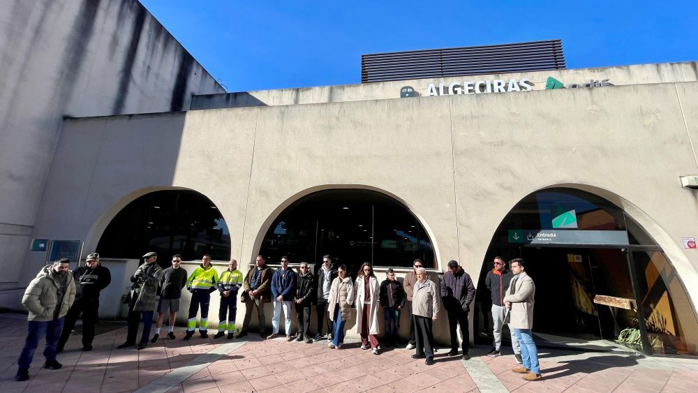 Consternación y tensión este martes en la estación de tren de Algeciras. Trabajadores de Renfe y Adif apenas cruzaban palabra mientras se preparaban para guardar los cinco minutos de silencio convocados a mediodía en los centros de trabajo del país, en recuerdo de las víctimas del accidente ferroviario registrado en Adamuz (Córdoba), que ha dejado 41 personas fallecidas y una treintena de heridos, que continúan recuperándose en distintos centros hospitalarios.