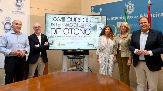 Esta mañana, el alcalde de Algeciras, José Ignacio Landaluce, y el vicerrector de Sostenibilidad y Cultura de la Universidad de Cádiz (UCA), Gonzalo Sánchez Gardey, han presentado en la Casa Consistorial los XXVIII Cursos Internacionales de Otoño de la UCA en Algeciras, que se celebrarán del 22 de octubre al 14 de noviembre.