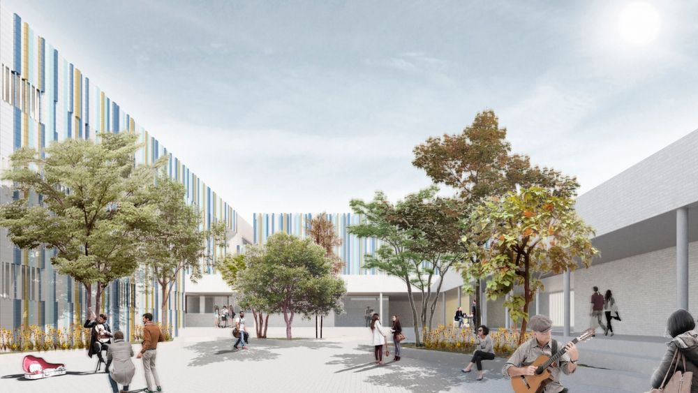 Acogerá, asimismo, un salón de actos con acceso desde el exterior para poder ser usado fuera del horario escolar. Tendrá también cafetería, porche exterior cubierto, zonas ajardinadas y área de estacionamiento para vehículos.