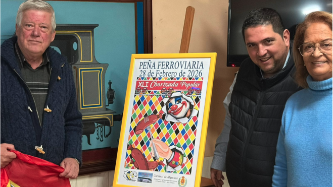 La teniente de alcalde delegada de Feria y Fiestas, Juana Cid, ha asistido a la presentación del cartel anunciador de la XLI Chorizada Popular que organiza la Peña Ferroviaria en un acto en el que también la directiva de la citada peña, presidida por José Luis Murgado ha dado a conocer el nombre del que será pregonero de la misma, Vicente Palomares, concejal delegado de Coordinación.