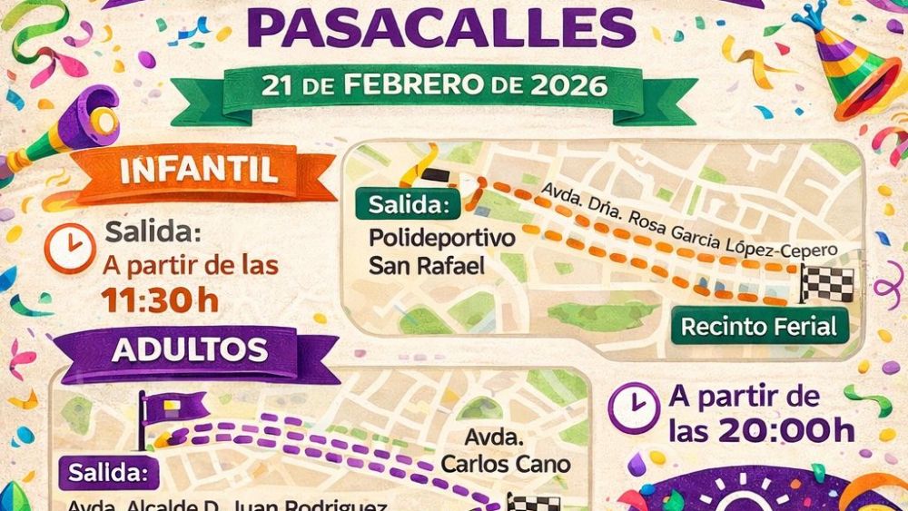 Los Barrios vivirá mañana sábado, 21 de febrero, una de las jornadas más esperadas del año con la celebración de los pasacalles del Carnaval 2026. La programación incluye un desfile infantil por la mañana y un gran pasacalles de adultos por la noche, junto con concurso de disfraces y baile final, en una fiesta pensada para todas las edades.