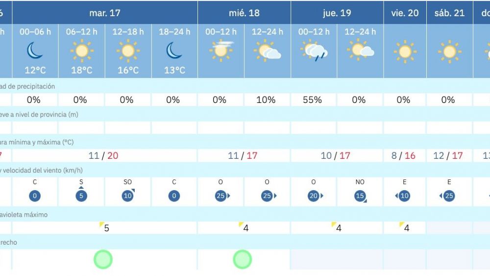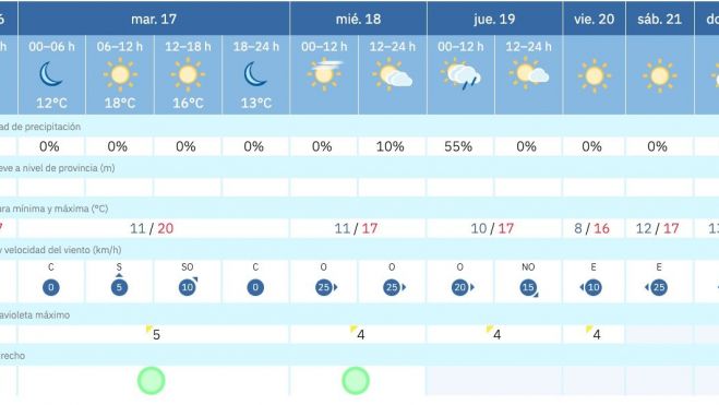 Sin embargo, las predicciones señalan que el fin de semana el tiempo será soleado y con temperaturas que ronden entre los 8 y 13 grados de mínimas y que podrían alcanzar hasta los 17 de máxima.