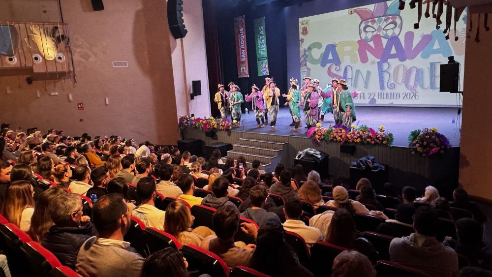 San Roque vive esta viernes, 20 de febrero, la final del Concurso de Agrupaciones del Carnaval 2026. Un total de cuatro chirigotas y cuatro comparsas competirán en la última noche, en la que también tará fuera de concurso la comparsa gaditana del Peluca Los amish del mono.