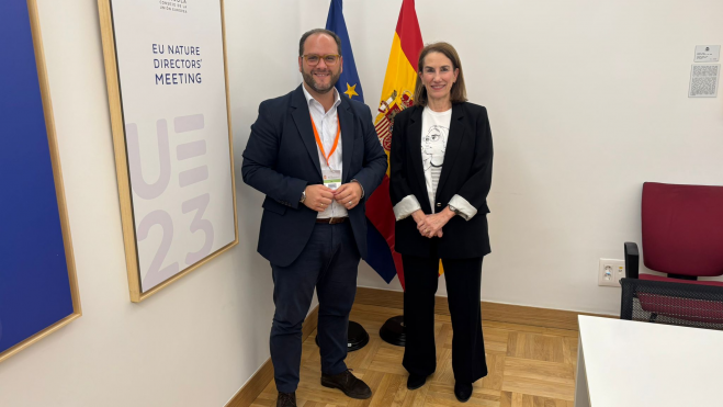 El alcalde de Castellar de la Frontera, Adrián Vaca, fue recibido ayer en la capital en un encuentro clave para el futuro de la localidad y la gestión de la finca pública La Almoraima. La cita tuvo lugar en la sede del Ministerio para la Transición Ecológica y el Reto Demográfico (Miteco), donde Vaca mantuvo una reunión con María Jesús Rodríguez de Sancho, Directora General de Biodiversidad, Bosques y Desertificación, y Presidenta del Consejo de Administración de La Almoraima S.A.
