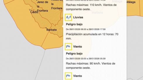 El aviso naranja por viento estará activo en todo el Campo de Gibraltar. Las fuertes rachas de viento, que podrían alcanzar los 110 kilómetros por hora, se establecerán entre las 07.00 hasta las 14.59 horas.
