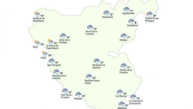 Para este lunes, las precipitaciones acumuladas previstas son, por municipios, Los Barrios, 11,1 mm; Algeciras, 8,5 mm; San Roque, 7,1 mm; y La Línea, 6,2 mm. En la zona de interior las lluvias pueden dejar hasta 23,9 litros por metro cuadrado en Tarifa; 23 mm, en Jimena; 14,5 mm, en Tesorillo; y 12 mm, en Castellar.