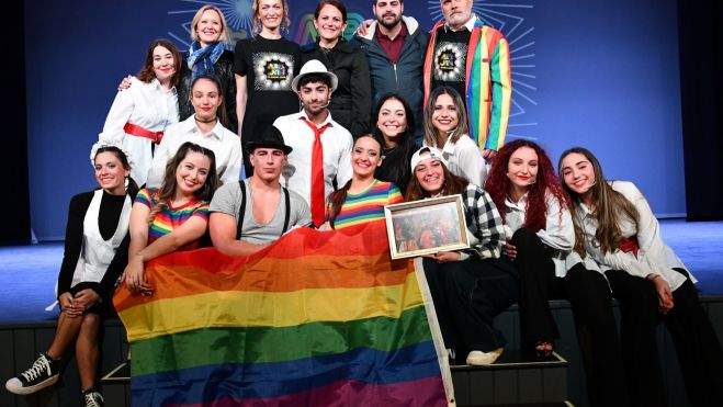 Al finalizar la actuación en el escenario, la concejal de Igualdad y Asuntos Sociales, Mónica Córdoba, junto a Jesús Tomillero hicieron entrega de un detalle a los miembros del musical como muestra de agradecimiento por dar visibilidad a la libertad en el amor que tan necesario es nuestra sociedad para respetar a todos y todas.