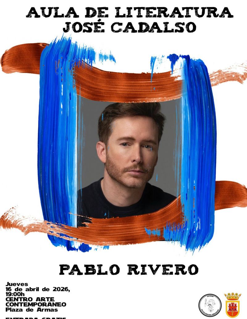 El actor y escritor Pablo Rivero protagonizará la próxima edición del Aula de Literatura Jose Cadalso, que organiza la delegación de Cultura para el jueves 16 de abril a las 19 horas en el Centro de Arte Contemporáneo (CAC) de la plaza de Armas.