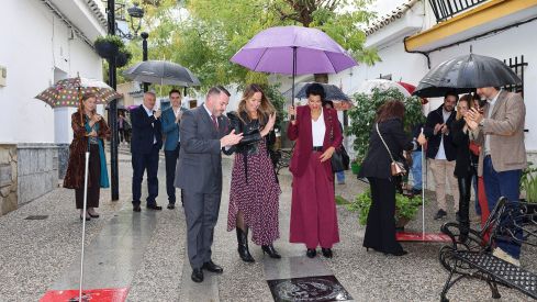 Tras la firma en el Libro de Honor por parte de familiares de los artistas, la comitiva se desplazó a la Calle Petenera, donde se encuentra el Paseo del Flamenco. Allí se procedió al descubrimiento de las baldosas dedicadas al algecireño Paco de Lucía y a la jerezana Lola Flores.