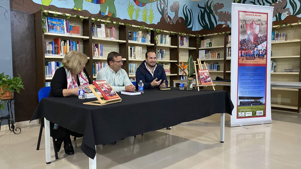 El X Ciclo ‘Escritores’, organizado por la delegación de Cultura, que dirige Daniel Pérez Cumbre, y la Asociación de Mujeres ‘Telethusa’, que preside María José Alconchel, ha traído hoy a la biblioteca pública municipal la presentación de “Historia de una vida, historia de un club”, de José Luis Sánchez González. Cita que ha contado con la presencia también del concejal delegado de Educación, Raúl Álvarez.