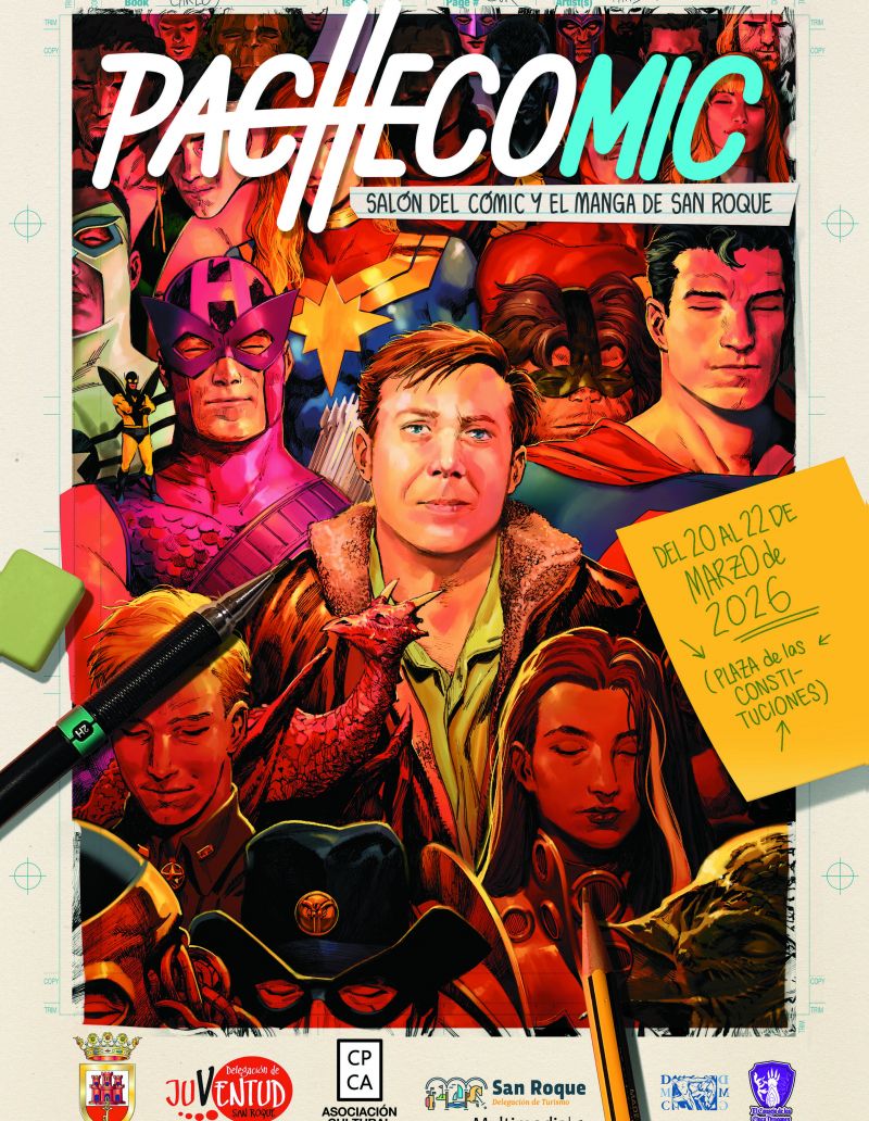 Por otro lado, Alex Pacheco ha agradecido al Ayuntamiento de San Roque el apoyo que siempre ha habido a los actos relacionados con su padre. Explicó que el cartel que presenta el Salón Pachecomic se hizo en 2022 tras el fallecimiento de Carlos Pacheco para el Salón del Cómic de Barcelona y se subastó para apoyar la investigación de la ELA.
