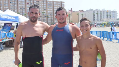 Los nadadores Ignacio Gaitán Cantos, del Club Natación Caballa de Ceuta; y Fátima Souissi Ayuso, del Club Natación Cádiz, han sido los ganadores, en chicos y féminas, de la décima edición del Tragamlllas 'Ciudad de La Línea' que ha tenido lugar hoy en la playa linense de 'Poniente', donde han participado -en categoría competitiva- 133 nadadores llegados des muchos rincones no sólo de la geografía española (madrileños, riojanos, catalanes...), sino que incluso una ondina se ha desplazado desde Inglaterra. Eso sí, nueve no han podido con los 2.000 metros de la prueba y se han retirado antes de llegar a una meta muy concurrida, con muchos familiares, amigos, curiosos y bañistas que no se han querido perder esta cita.