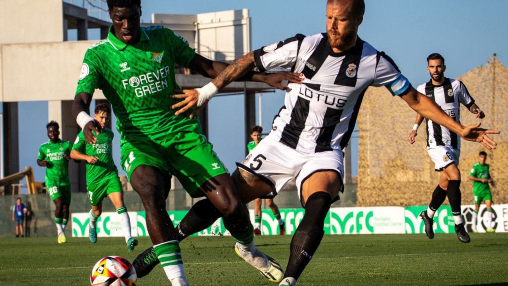 Tras el descanso, el Betis B se ha podido adelantar a los catorce segundos, pero Javi Pérez ha sodp providencial. Sin haberse cumplido el primer minuto, en el otro área, Salguero le ha quitado a Moreno el remate en boca de gol. La reanudación ha tenido ritmo, y la afición local ha estado a punto de cantar el primer gol del curso en su nueva casa, pero Vietes le ha hecho un paradón a Jara en el 53'. Cuatro más tarde, los de Mere han pedido penalti por unas posibles manos dentro del área bética, una acción que quizás deja más dudas que la anterior.