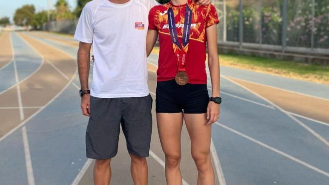 El Club Atletismo Bahía de Algeciras ya tiene en casa y presume de su laureada atleta Ana Prieto Benítez. La barreña se hizo con la medalla de bronce con el equipo de relevos español en la modalidad 'sueca' (cada posta corre 100, 200, 300 y 400 metros) en el Campeonato de Europa sub-18 celebrado en Jerusalén, Israel.