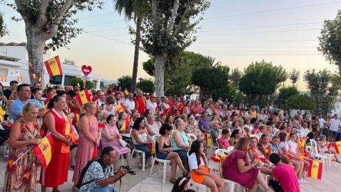 Más de 200 personas, entre las que se encontraban el alcalde, Juan Carlos Ruiz Boix, y el teniente de alcalde de la zona, Juan Serván, además de otros ediles, animaron sin cesar a la pareja española de Voley Playa y, para ellos, sí son de oro.