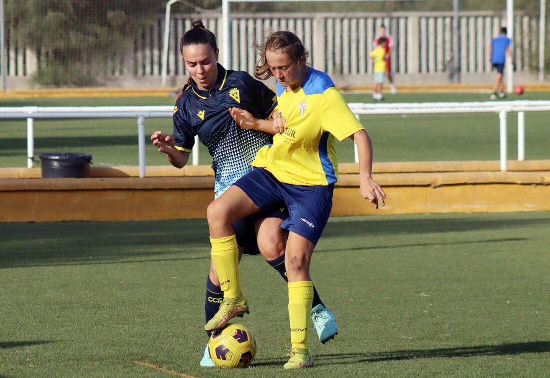 Las algecireñas se han presentado en el 'Juan Del Cura' del Complejo Deportivo 'La Menacha' (tanto su campo habitual, el 'Paco León', como el principal, el 'Antonio Ocaña', estaban ocupados) con ganas de resarcirse del 6-1 encajado el domingo en San Fernando. Y lo han hecho con creces pues, aunque no han ganado con holgura en cuanto al marcador, sí que lo han hecho en juego. Incluso han tenido un segundo gol al filo del descanso, de Fátima Díaz Bonora, pero el colegiado que ha señalado el centro del campo a pesar de las protestas cadistas, a instancias de su auxiliar, Noah Sánchez, anulado el tanto por una falta previa al inicio de la jugada.