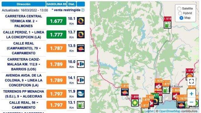 En Algeciras, la gasolinera con el combustible más barato es Ballenoil (1,79 euros), en el polígono de La Menacha. En San Roque, una de las estaciones con el precio más asequible es la de Cepsa (1,82), en la carretera C3331 kilómetros 88. En contra partida, en estos momentos, este miércoles la gasolina más cara se vende en la estación Gacosur, en Palmones, con 1,99 euros el litro de gasolina 95. Puedes consultar al completo este baile de precios en komparing.com